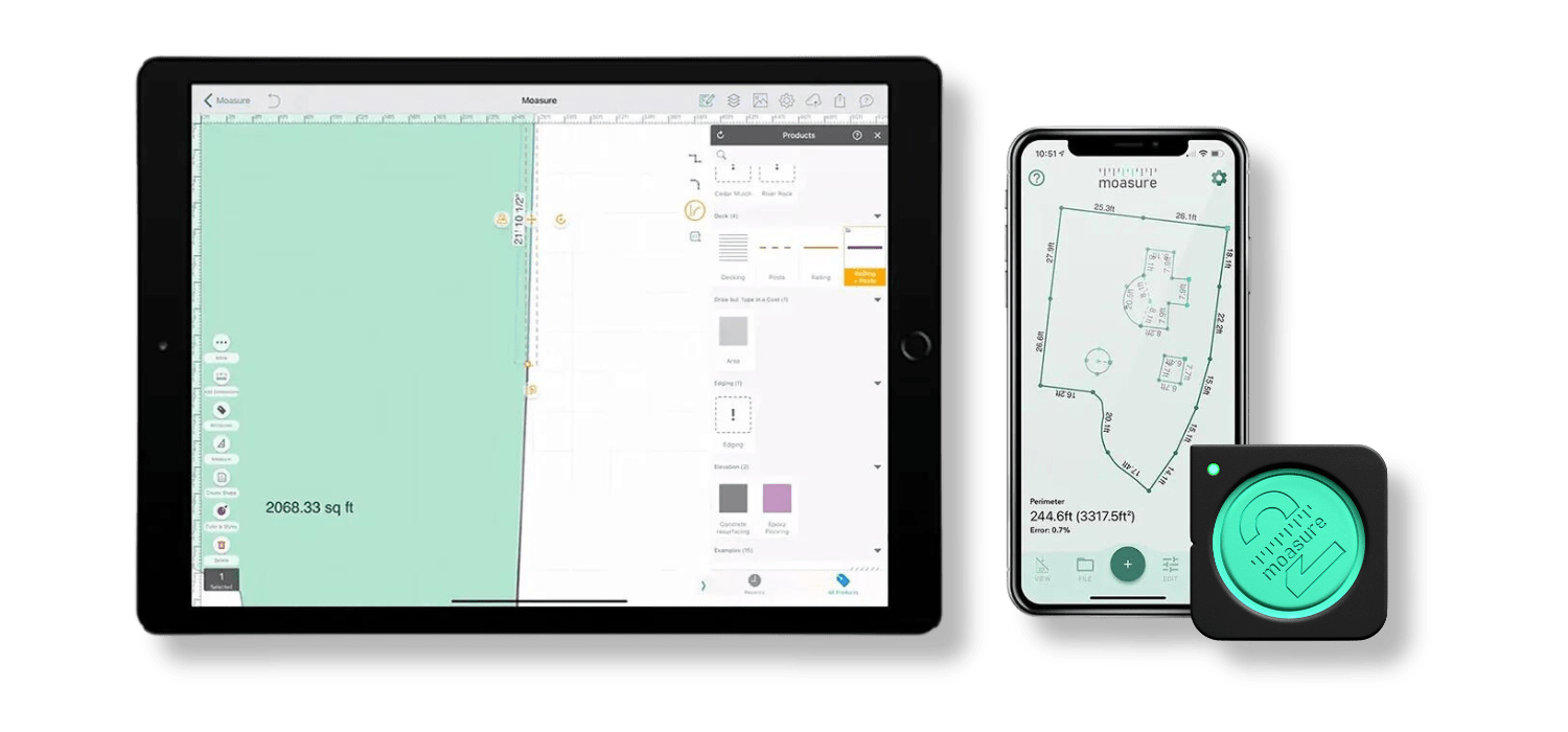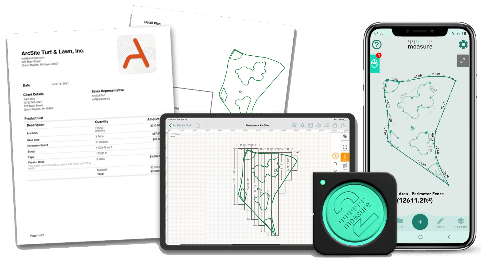 Misura facilmente i siti dei clienti (all'interno e all'esterno) con Moasure®. Trasferisci istantaneamente le misure in ArcSite con un click. Con Moasure® è possibile misurare linee, angoli, archi, aree e altro ancora con una precisione comprovata. Quando viene importato in ArcSite, si elimina la possibilità di errori di misurazione e di determinazione del prezzo.