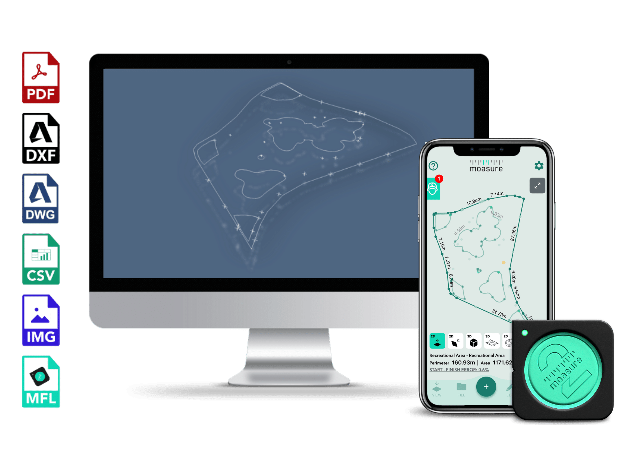 Dalla misurazione di forme complesse, come prati o scalinate inclinati, al calcolo della pendenza, ai rilievi topografici e alluvionali in cui può lavorare in sinergia con altri strumenti, Moasure semplifica le misurazioni più difficili.